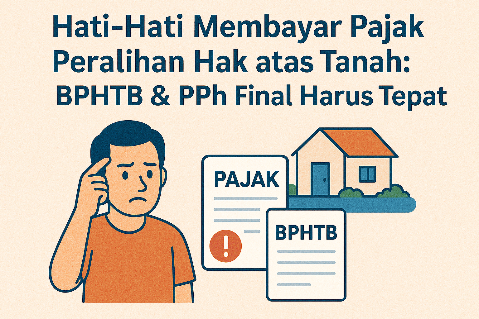 Peralihan hak atas tanah dan/atau bangunan tidak berhenti hanya pada kesepakatan perdata antara penjual dan pembeli. Ada konsekuensi fiskal yang menentukan sah tidaknya proses lebih lanjut di hadapan Pejabat Pembuat Akta Tanah (PPAT) dan pendaftaran di Kantor Pertanahan. Dua kewajiban yang hampir selalu hadir adalah Pajak Penghasilan (PPh) Final Pasal 4 ayat (2) (pajak pusat) dan Bea Perolehan Hak atas Tanah dan Bangunan (BPHTB) (pajak daerah). Kesalahan sekecil apa pun pada tahap pembayaran dapat berujung pada terhambatnya penandatanganan akta, tertundanya balik nama sertifikat, hingga proses koreksi atau restitusi yang panjang.