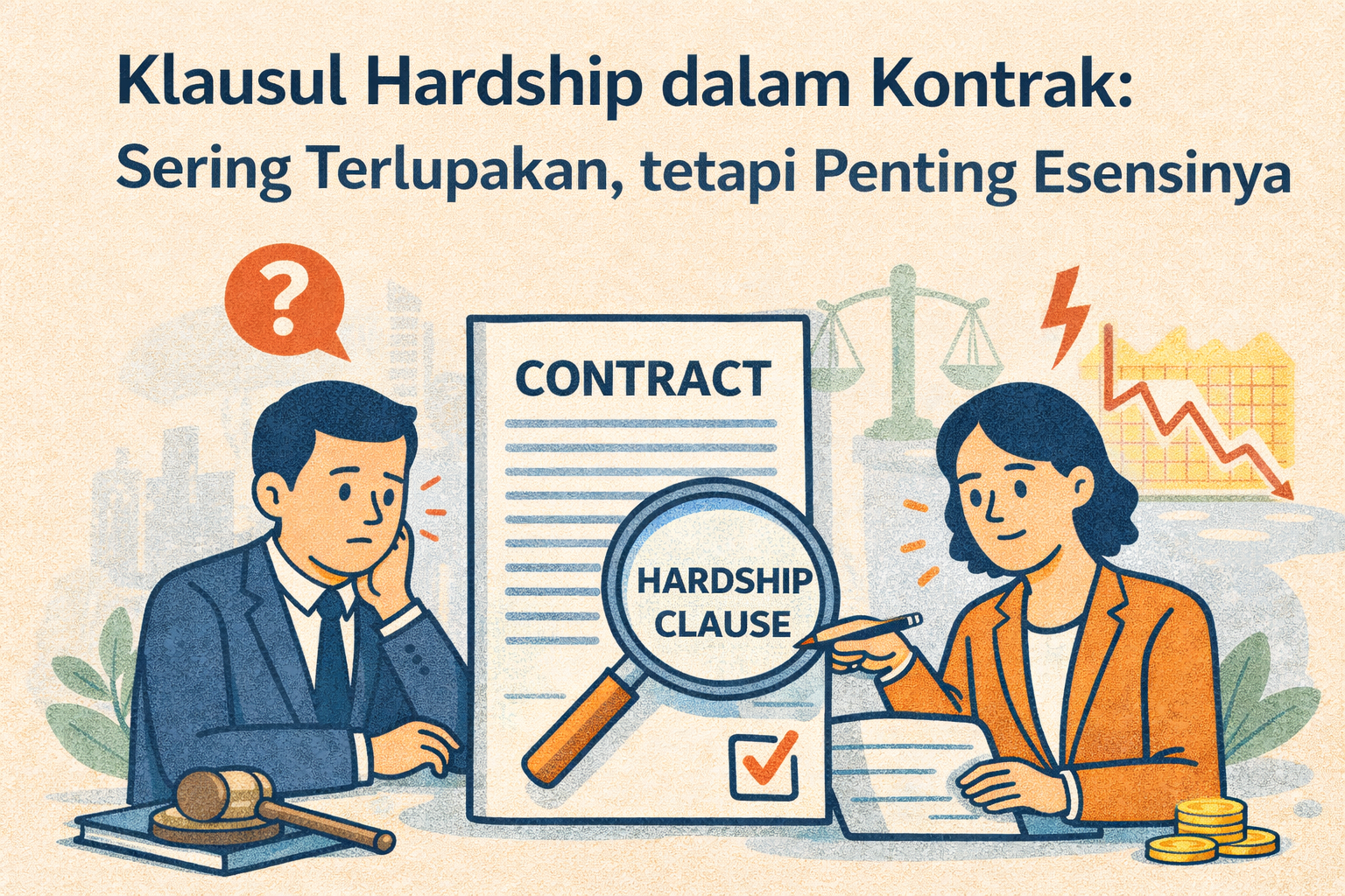 Dalam praktik penyusunan kontrak, perhatian para pihak biasanya maupun para drafter lebih banyak tersita pada klausul-klausul yang sejak awal tampak paling menentukan, seperti objek perjanjian, harga, jangka waktu, hak dan kewajiban, wanprestasi, ganti rugi, serta penyelesaian sengketa. Namun, ada satu klausul yang justru semakin penting dalam perkembangan hubungan kontraktual, tetapi dalam praktik masih sering terlewatkan, yaitu klausul hardship. Padahal, tidak semua persoalan dalam pelaksanaan kontrak muncul karena prestasi menjadi mustahil dilakukan. Dalam banyak keadaan, prestasi itu sesungguhnya masih dapat dilaksanakan, hanya saja pelaksanaannya berubah menjadi sangat berat, jauh lebih mahal, atau tidak lagi berdiri di atas keseimbangan yang sama sebagaimana ketika kontrak itu disepakati pada awalnya. Dalam titik inilah klausul hardship menjadi relevan untuk dibicarakan secara lebih serius.